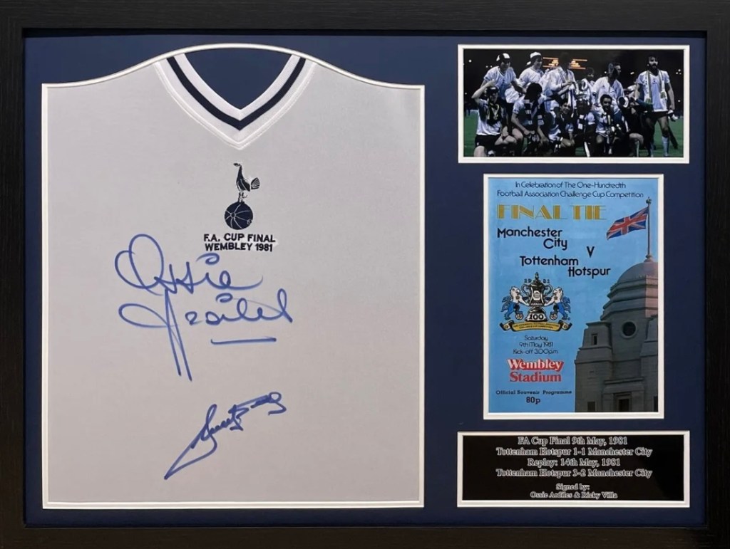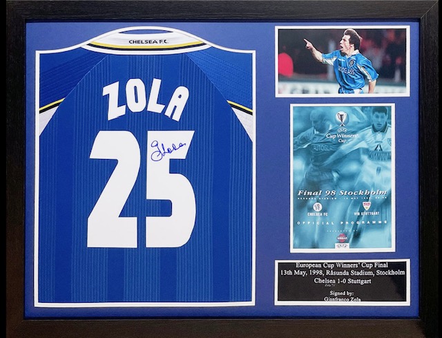 Chelsea – Frank Lampard £450Chelsea – Gianfranco Zola £360Chelsea Ruud Gullit £375Liverpool – Steven Gerrard £450Tottenham Hotspur – 1984 UEFA Cup Winners Team Signed £499Arsenal – Denis Bergkamp £375Manchester United – Eric Cantona £399Newcastle United Alan Shearer £199Tottenham Hotspur Ardiles/Villa 1981 FA Cup Final Shirt £350Manchester United Eric Cantona £250Chelsea Frank Lampard £250Arsenal – Dennis Bergkamp £225West Ham United – Trevor Brooking £325Paul “Gazza” Gascoigne signed 1991 FA Cup Semi-Final photo £185England – Gascoigne ‘Dentist’s Chair’ Euro ’96 £185Thierry Henry Arsenal £499Declan Rice Arsenal £499West Ham United Jarrod Bowen £399Manchester United Bryan Robson £375
