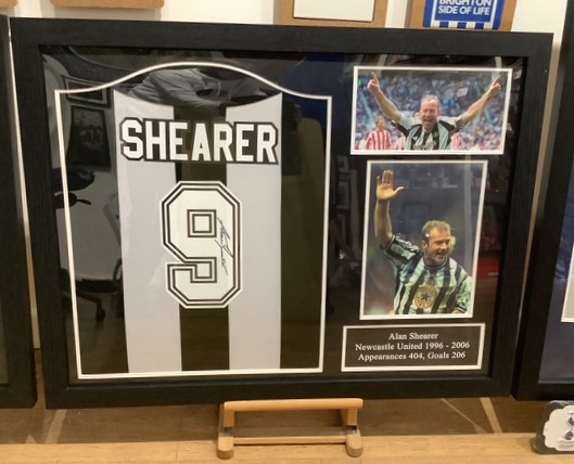 Chelsea – Frank Lampard £450Newcastle United – Alan Shearer £325Chelsea Ruud Gullit £375Liverpool – Steven Gerrard £450Tottenham Hotspur – 1984 UEFA Cup Winners Team Signed £499Arsenal – Denis Bergkamp £375Manchester United – Eric Cantona £399Newcastle United Alan Shearer £199Tottenham Hotspur Ardiles/Villa 1981 FA Cup Final Shirt £350Manchester United Eric Cantona £250Chelsea Frank Lampard £250Arsenal – Dennis Bergkamp £225Manchester City – Phil Foden £450Paul “Gazza” Gascoigne signed 1991 FA Cup Semi-Final photo £185England – Gascoigne ‘Dentist’s Chair’ Euro ’96 £185John Barnes Liverpool £325Declan Rice Arsenal £499West Ham United Jarrod Bowen £399Manchester United Bryan Robson £375